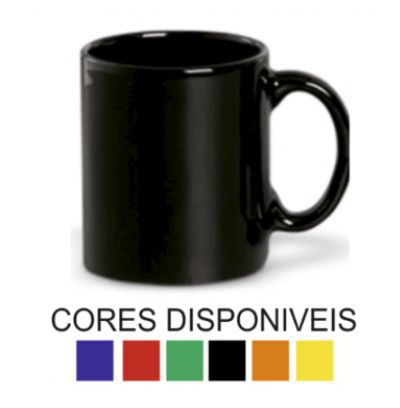 Caneca de cerâmica reta, capacidade de 325 ml, com possibilidade de gravação interna. Cor: Diversas cores.